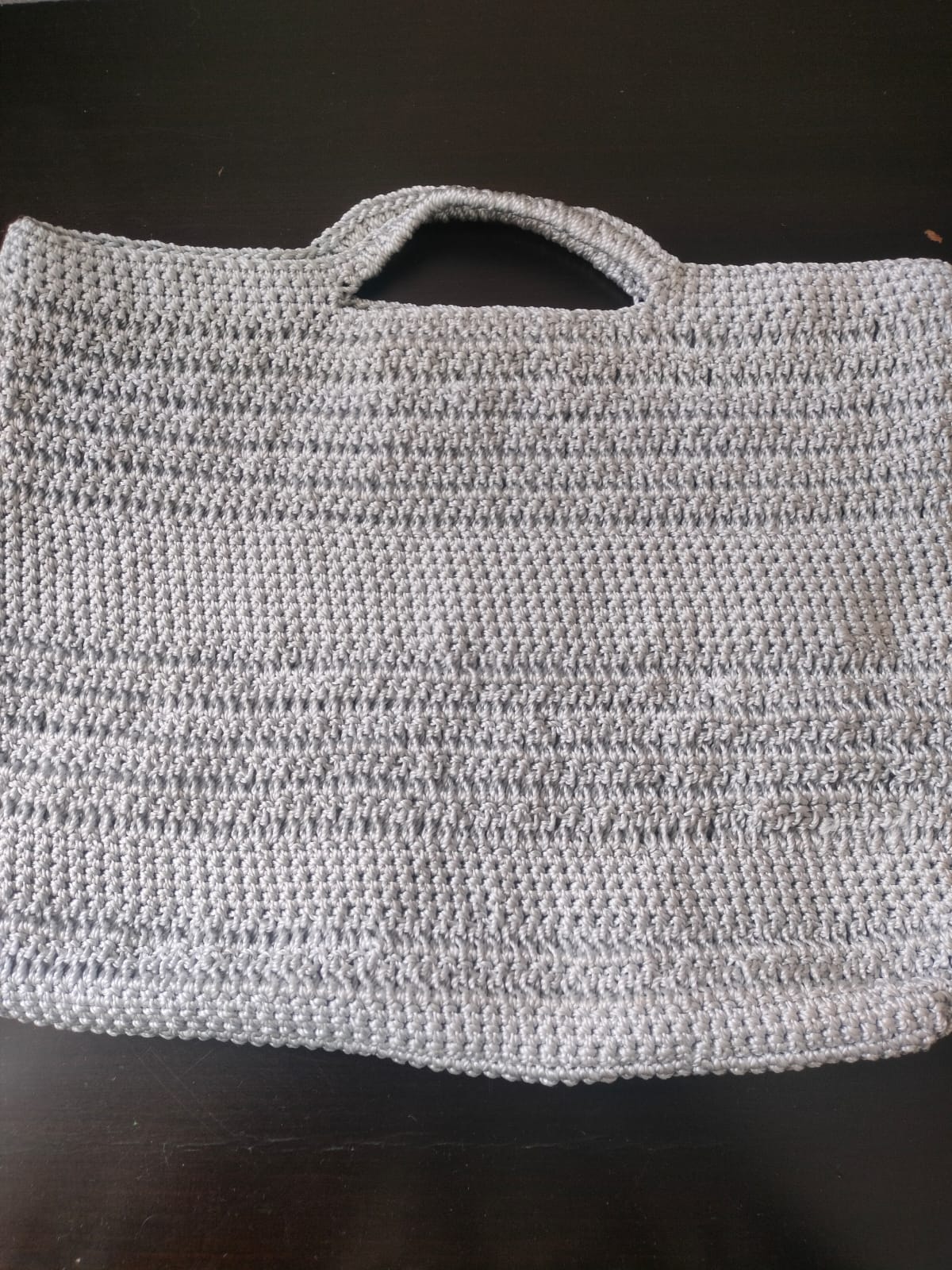 This handmade crochet laptop bag is carefully crafted using high-quality yarn with neat, tight stitches for strength and durability. The elegant grey colour gives it a clean, modern, and professional look, suitable for daily office use, college, or casual outings.